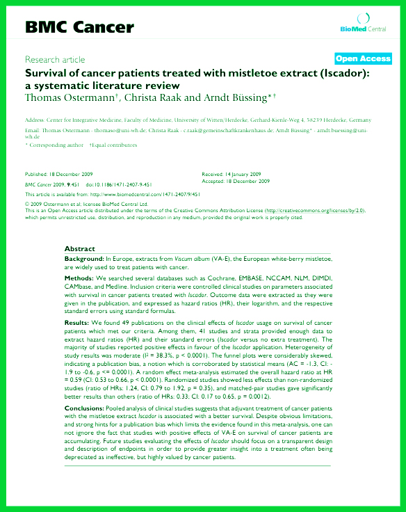 Survival of cancer patients treated with mistletoe extract (Iscador): a systematic literature review