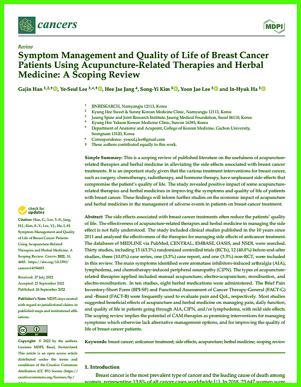 유방암수술후 요양병원이나 한방병원을 찾는 환우분들의 사례도 접하셨을 텐데요.