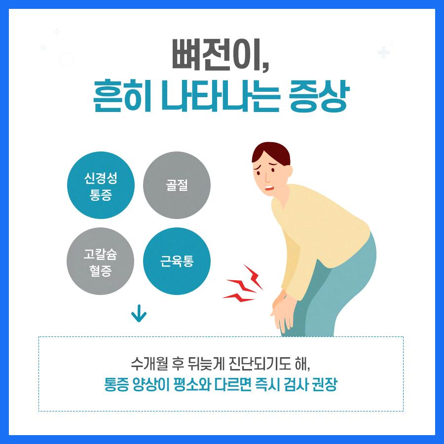 ▲점점 심해지는 지속적 통증이 가장 흔한 증상이며, 특히 밤에 심해지거나 쉬어도 나아지지 않는 것이 특징적입니다. 단순 근육통으로 오인해 물리치료만 받다가 뒤늦게 발견되는 경우도 적지 않습니다.