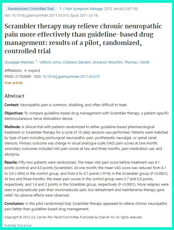 “Scrambler therapy may relieve chronic neuropathic pain more effectively than guideline-based drug management”